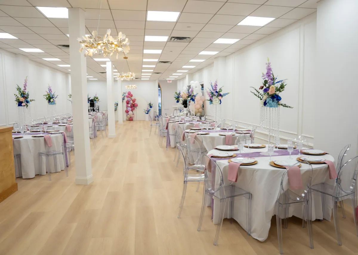 Budget-friendly packages: Start simple with venue-only rental or elevate your event with full styling and extras.